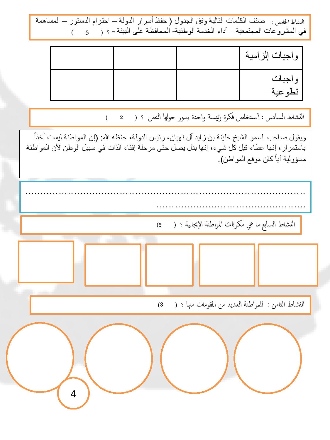 ورقة تقويم المواطنة الايجابية الوحدة الثانية بدون حل دراسات اجتماعية صف سادس فصل أول مدرستي الامارتية