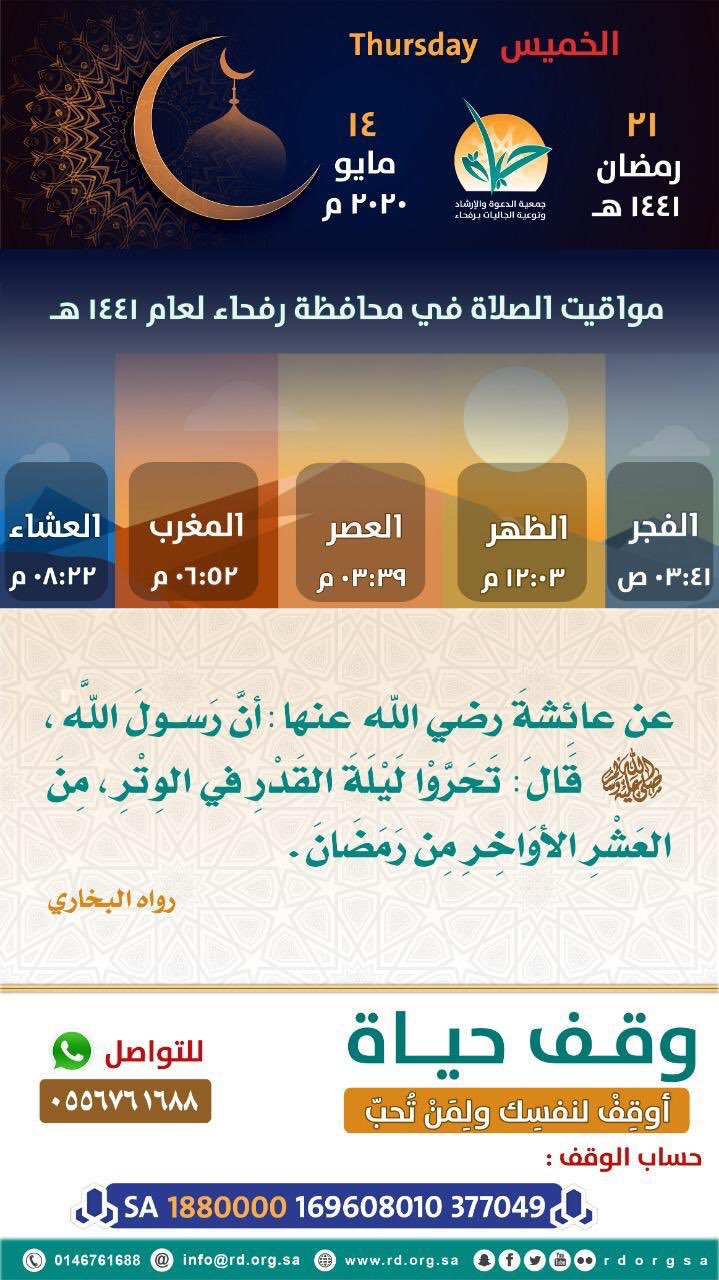 Uzivatel جمعية الدعوة برفحاء Na Twitteru إشراقة حياة مواقيت الصلاة في محافظة رفحاء 21 رمضان رفحاء عرعر العشر الاواخر ليلة القدر