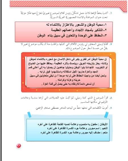 شرح وحل تدريبات قصيدة احب وطني للصف الثامن المنهاج السوري الجديد للشاعر نبيه سلامة