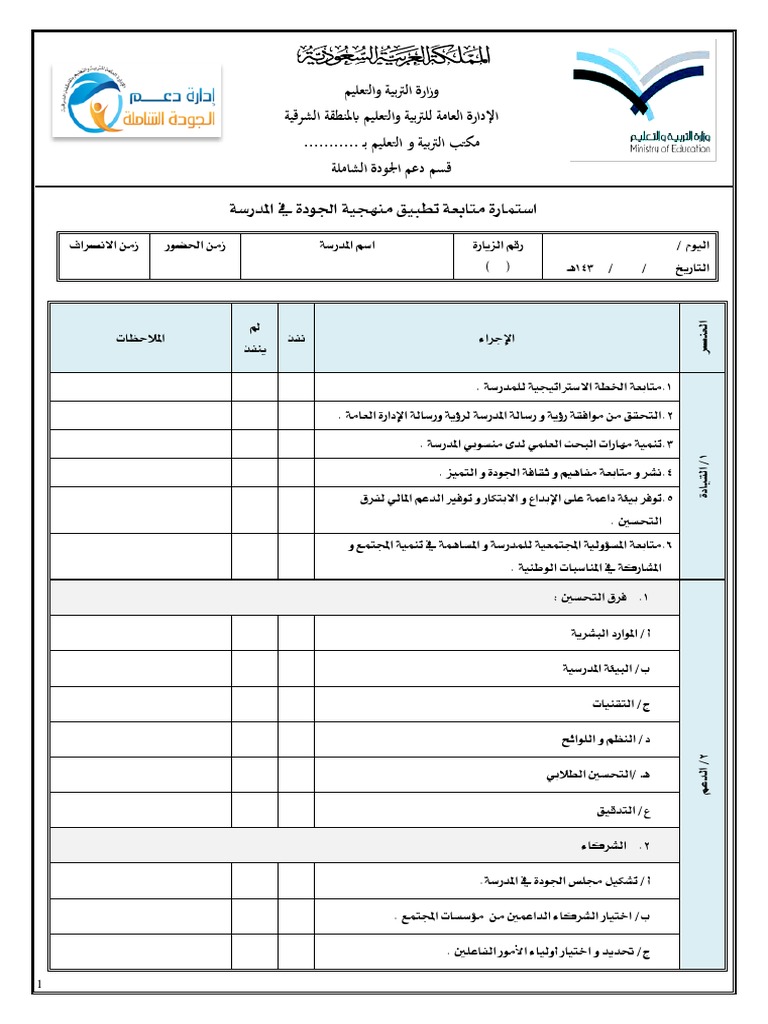 استمارة متابعة تطبيق المنهجية بعد التعديل Pdf