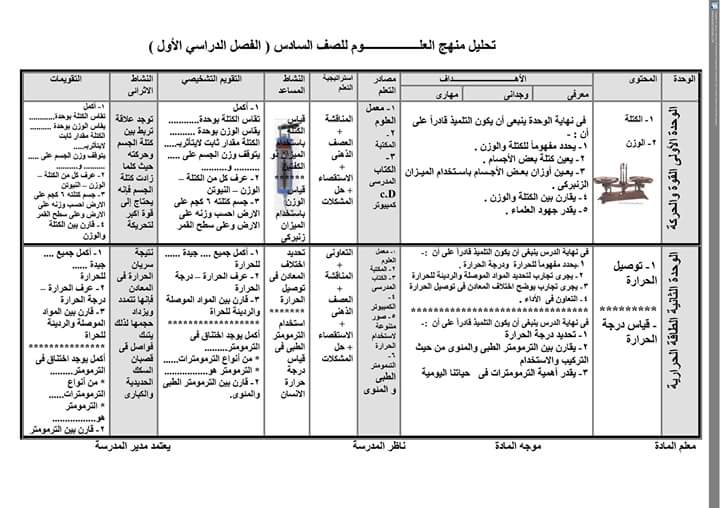 دفاتر تحضير العلوم للمرحلة الابتدائية والاعدادية الأهداف نواتج التعلم تحليل المنهج توزيع المنهج التحضير