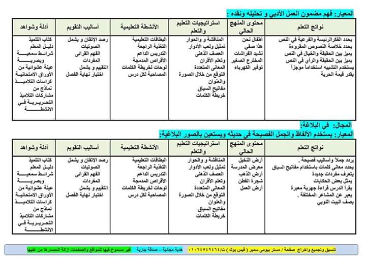 خريطة نواتج التعلم للغة العربية للصف الرابع الابتدائى 2019